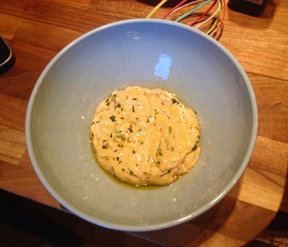 asi se ve la masa ya lista para dejarla reposar (le puse un poquto de aceite de oliva para que no formara costra)