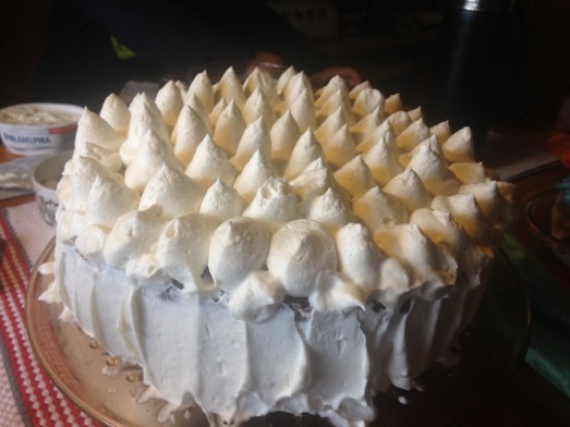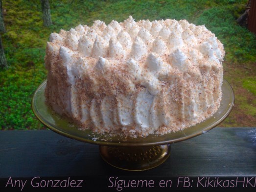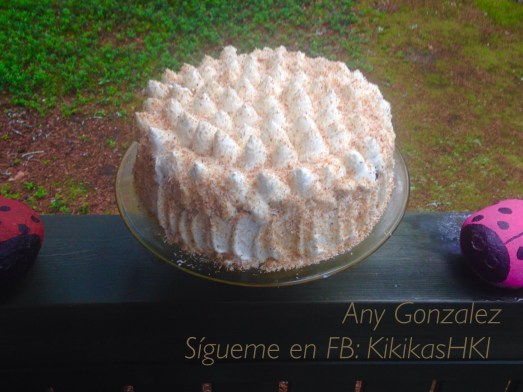Se bate la crema hasta que haga picos y se agrega la leche de coco y el azucar y una vez batido esta listo para decorar el pastel.