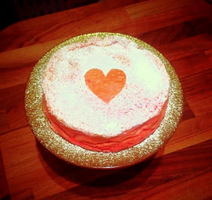 You can brush the cake with some apricot jam syrup and/or dust with powdered sugar (confectioner’s sugar) to finish. You can serve it with whipped cream if desire