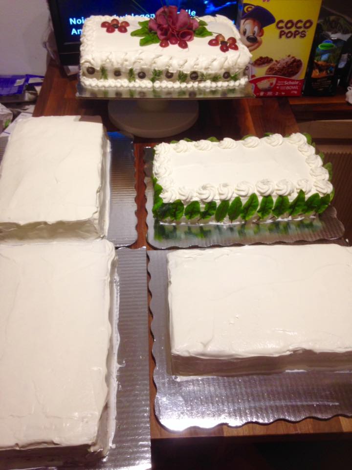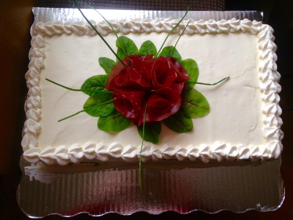 Para el decorado compré un jamón en forma circular y mas ahumado y seco al mismo tiempo que es mas propicio para hacer las flores lo doblan a la mitad y luego hacen como un conito y asi es como hice que se vean como flores, pero pueden buscar en internet en google: escriben Voileipäkakku y veran muchos hermosos (voi leipä es pan de caja) y (kakku) pastel.