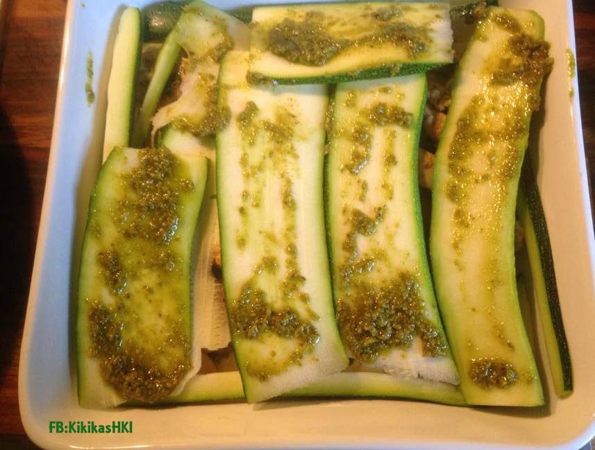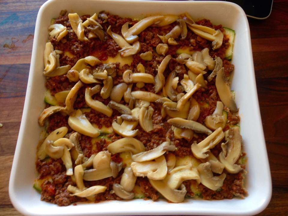 siguiente capa de calabazas y se repite todo el procedimiento solo ahi agregan los champiñones despues de la salsa (o se los pueden agregar antes a a salsa y mezclarlos es a su gusto)