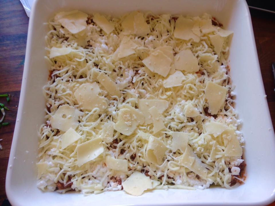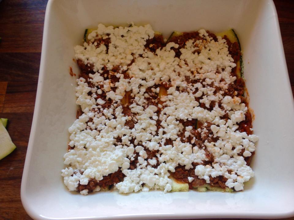 después una capa de queso cotagge (lo dividen en 2 y ponen la mitad en esa capa)