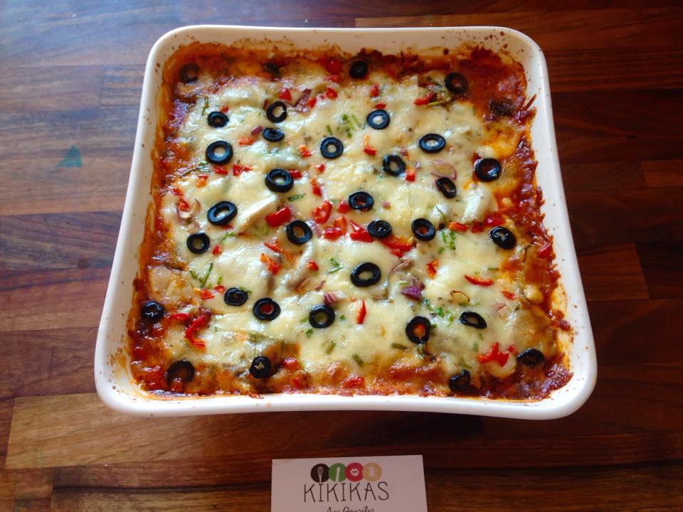 y la meten al horno tapada con papel aluminio (recordando que lo brilloso va hacia dentro) y la dejan uns 20 minutos a 180 grados, revisan que ya se vea cocida y derretido el queso y quitan el papel aluminio y otros 15 minutos ya sin el aluminio y listo!!