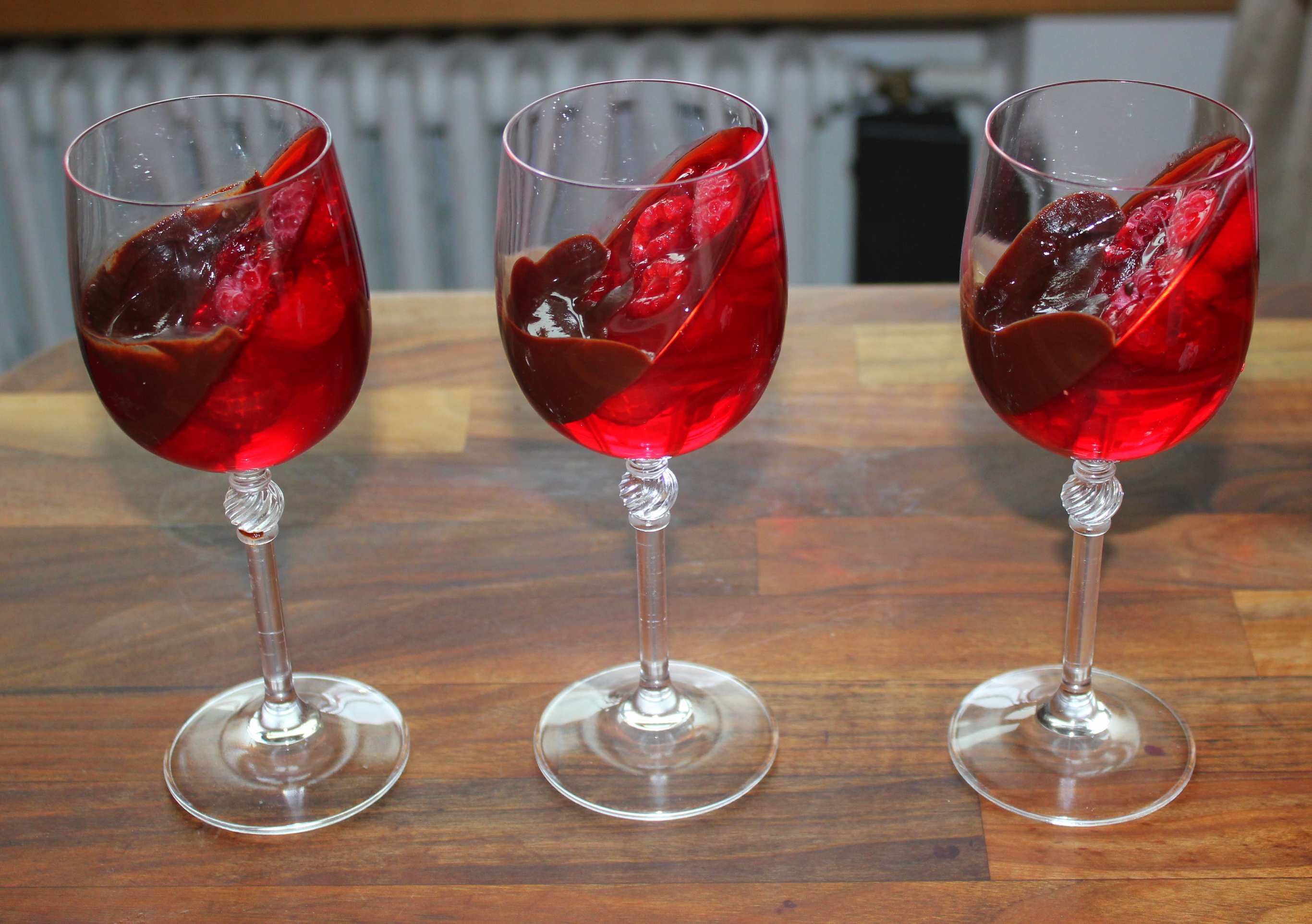 en un vaso ponen la grenetina con el agua a que se hidrate, en una olla ponen a calentar la crema, el pure de frambuesa, el glace y el ácido cítrico, una vez que empieza a hervir le apagan y retiran del calor la olla, y siempre mezclando para que no se pegue en el fondo, ahi agregan la grenetina (que se derritira con el calor de lo que hirvió, y ahi mismo agregan el chocolate en pedacitos pequeños y siguen mezclando, y les quedara como una sopa líquida que tienen que dejar reposar hasta que llegue a temperatura ambiente y una vez así la meten al refri bien tapada y así les puede durar varios dias.