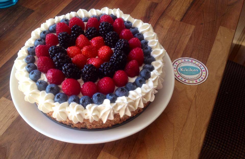 Una vez frio el mostachon yo hice un circulo con la crema alrededor y despues vertí el ganache en medio y en ese paso pueden meterlo al refri para que espece y después decorar con la fruta de su eleccion.. Y ahora si… Al ataque mis valientes!